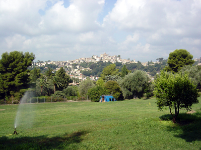 | ここも、一度訪れてみたかった「鷲の巣村」です。標高も760メートル、地中海に近い地形なのに、鷲の巣村としてもかなりの高度に位置します。今はレストランとなっている、絶景のグールドン城にて昼食を。 |
