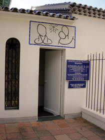 | そしてこの日最後に、ヴァロリスという村を訪れました。陶器で有名で、かつてピカソが晩年住み、70歳の誕生日のお祝いのお礼に描いたという「戦争と平和」は特に有名です。国立ピカソ美術館にあるその絵は、礼拝堂の壁画として描かれたもので、人類の愚かさと、民族も宗教も超えた平和の世界が描かれています。(写真撮影禁止のため、絵葉書からのコピーです。) |