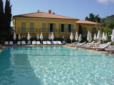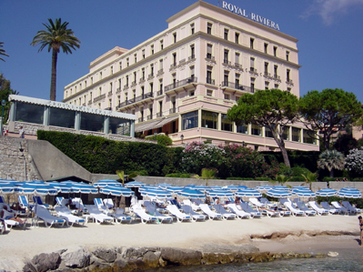 | サン・ジャン・カップ・フェラ(フェラ岬)は、ニースからイタリアへ向かう方角にあり、ちょうどニースとモナコの中間あたりに位置します。 今回は、コート・ダジュール(紺碧海岸)の旅ながら、海沿いに泊まるのはこのホテル・ロワイヤル・リヴィエラだけです。ここは、白砂ビーチでの海水浴と、真水の温水プールが両方楽しめる、このあたりでも数少ないロケーションにあります。 このあたりは、冬でも温暖で「小アフリカ」と呼ばれるボーリューの街がすぐそばで、アンティーブ岬と並んで南フランスでも有数の高級リゾート地です。 アメリカン・エキスプレスのFine Hotels & Resortsプラン(部屋のアップグレード、朝食無料サービス、スパでのマッサージ付き)を利用したので、オーシャンフロントのデラックスルームというとても良い部屋に泊まることが出来ました。 |